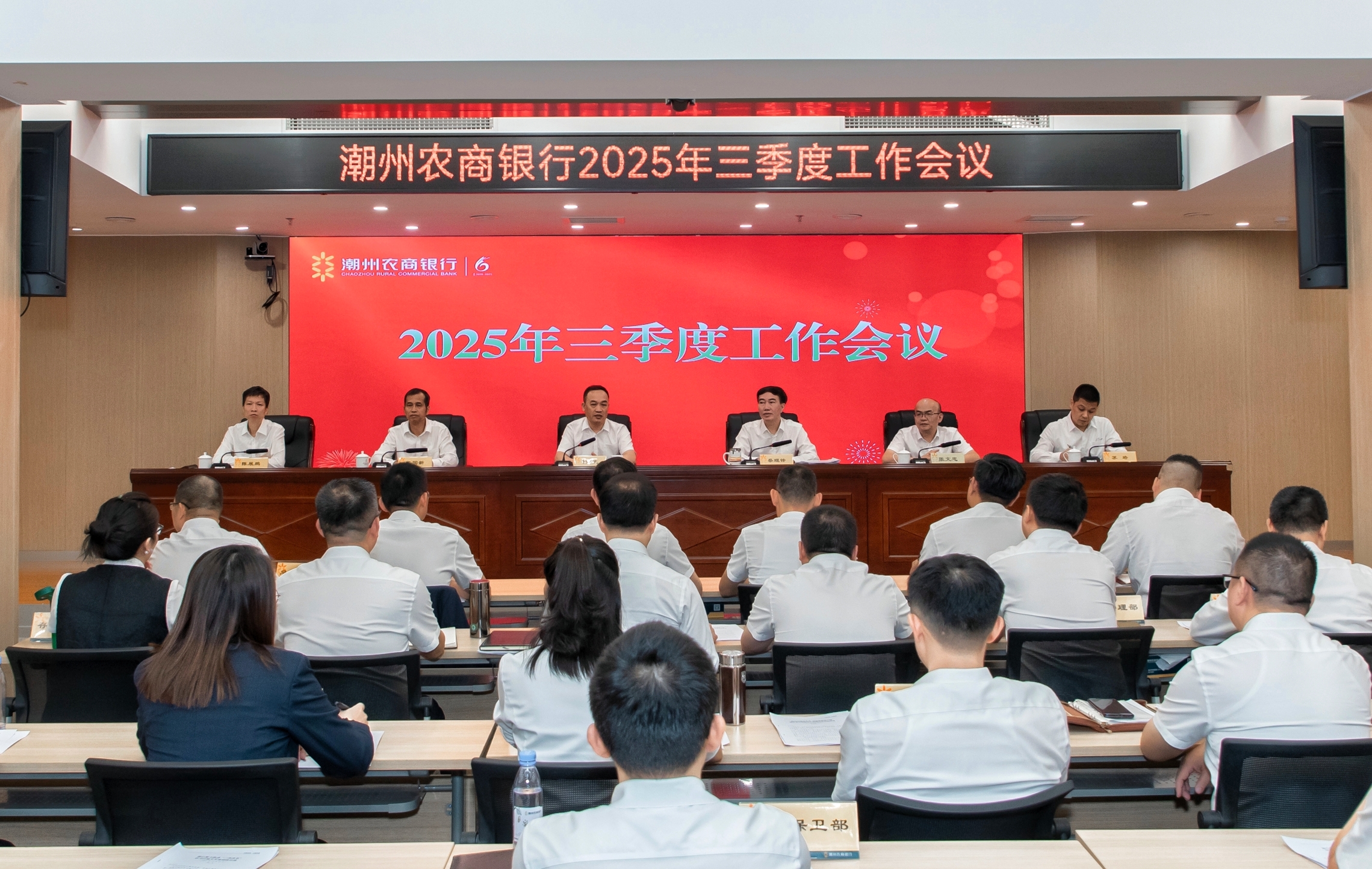 10月22日,潮州农商银行召开2025年三季度工作会议。会议坚持以习近平新时代中国特色社会主义思想为指导,深入贯彻党的二十大、二十届三中全会和中央经济工作、中央金融工作会议精神,全面落实省市决策部署及主发起行各项工作要求,分析前三季度经营情况,部署四季度业务冲刺,布局明年“开门红”工作。行领导班子成员、中层干部、各经营机构及网点负责人、业务骨干参加会议。